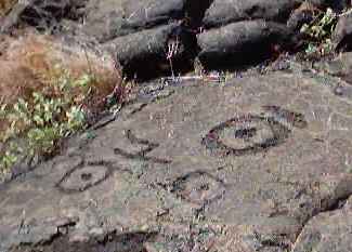 For the next stop we had to get out of the car and walk a good 20 minutes to a point known as Pu'u Loa. There are LOTS of rock carvings at this site, indicating that the Hawaiian people thought it a very powerful site. In this particular carving you can see holes surrounded by circles. Into the holes would be placed the umbilical cord of new born children to promote a long life. |