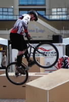 Caught these guys practicing for their next show. Mountain Bikes are big in Whistler during the summer when the ski lifts carry them and their bikes up so they can ride down the same slopes me and Dave have been snowboarding on! The team were showing off skills by hopping between wooden items (representing rocks and boulders I guess) and dropping from the roof of the team van to the ground. |