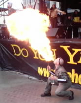 Fire! Entertainment (or the 'freaks' as Mr. Franti put it) during the concert consisted of a fire breather to keep us warm, two cherub types and an assortment of other weird people dressed up and willing to strut their stuff. |