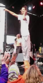 The last concert of the event gave us the chance to see Spearhead live. I had not heard of Michael Franti but Dave has a couple of his CD's. Although I did not see all of the bands play, this seemed to be an anticipated appearance for the small crowd that gathered, and we all joined in with a little boogie. It was raining throughout the concert, but well worth seeing a good live band. |