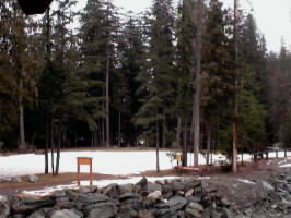 The beginning of Rebagliati Park, Whistler, which follows Fitzsimmons Creek to the Lost Lake. This path took us to the bottom of Blackcomb Mountain which was great for a beginner boarder like me to practice. We think the park is named after olympic snowboard champion Ross Rebagliati. |