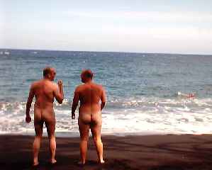 Oh yes, I forgot to mention it was a bit of a nudist beach. Its against the law in Hawaii to go natural, but this beach is known for stripping off. Not every one was bare, its up to you, but we all decided we would have a go (yes, thats Phil on the left and me on the right). I have to say it was very nice in the water, however we had to be careful getting in and out as the waves were breaking on some large pebbles. I got sucked backwards into the surf at one amusing point while trying to get out - feet in the air and all. Luckily I had my trunks on that time! |