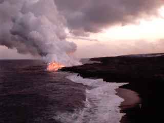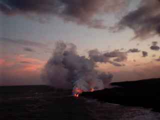 Finally signs that we are on the right track and getting closer. A huge sign warning of all the dangers - did we care? From this point is was another 15 minute walk to the flow, but we could see the steam plume clearly from here, but no lava yet. |