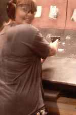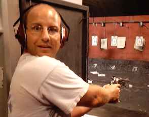 Check out the look on my face after firing the Magnum! We started off small with a .22 revolver and semi-auto pistol to get us going. Moving on up to the 9mm Berreta and a Glock 21 semi-auto, followed by the Smith & Western .38 Special (my favourite) and the Magnum last - boy what a kick that baby gave. We all kept our empty shells from the Magnum and mine now make pretty good incense burners. |