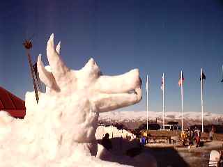Chris, one of the Edgewater Adventure drivers, carved out this pretty good snow dragon (which Dave insisted on calling a camel...) |