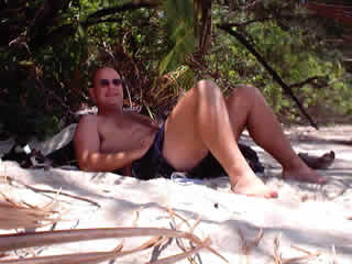 After walking through the mangroves, forest, checking out the bat and cooking of course I was going to relax! The perfect spot, just under a a leafy fern to keep the harshness of the sun off me. Empty coconut nut shells were all around me and I did wonder if any were going to strike me, but the shells did make great scoops for building my 'recliner'. |