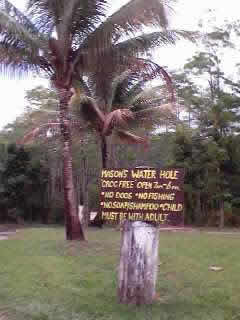 Masons Water Hole. NO WAY was I going for a dip in that hole, even if the sign did say it was croc free! It did not look particularly inviting with the water level was low - even still, just the thought that a croc may be close by put me off. Its a wonder I even made it into the sea so much. Masons Shop - the only one here - was very close by, and this is were you booked the night trek. Luckily I had stocked up on some decent sausages and bacon at Port Douglas as I did not fancy Masons too much! |